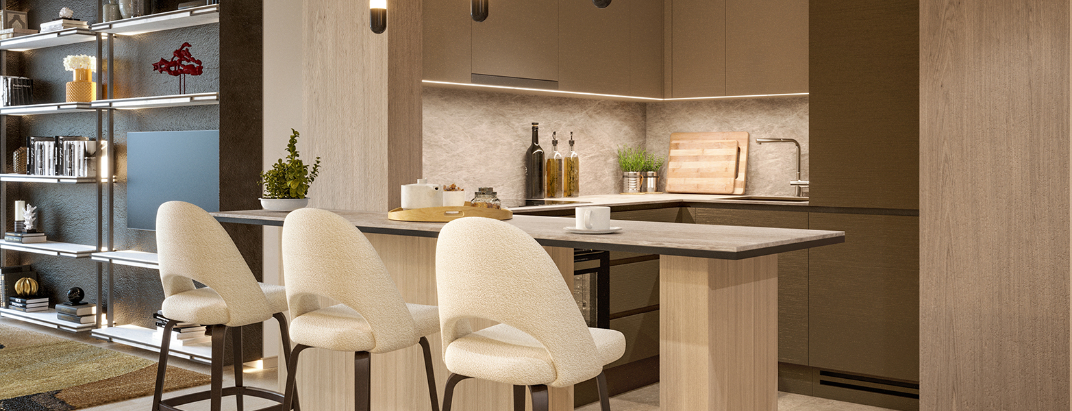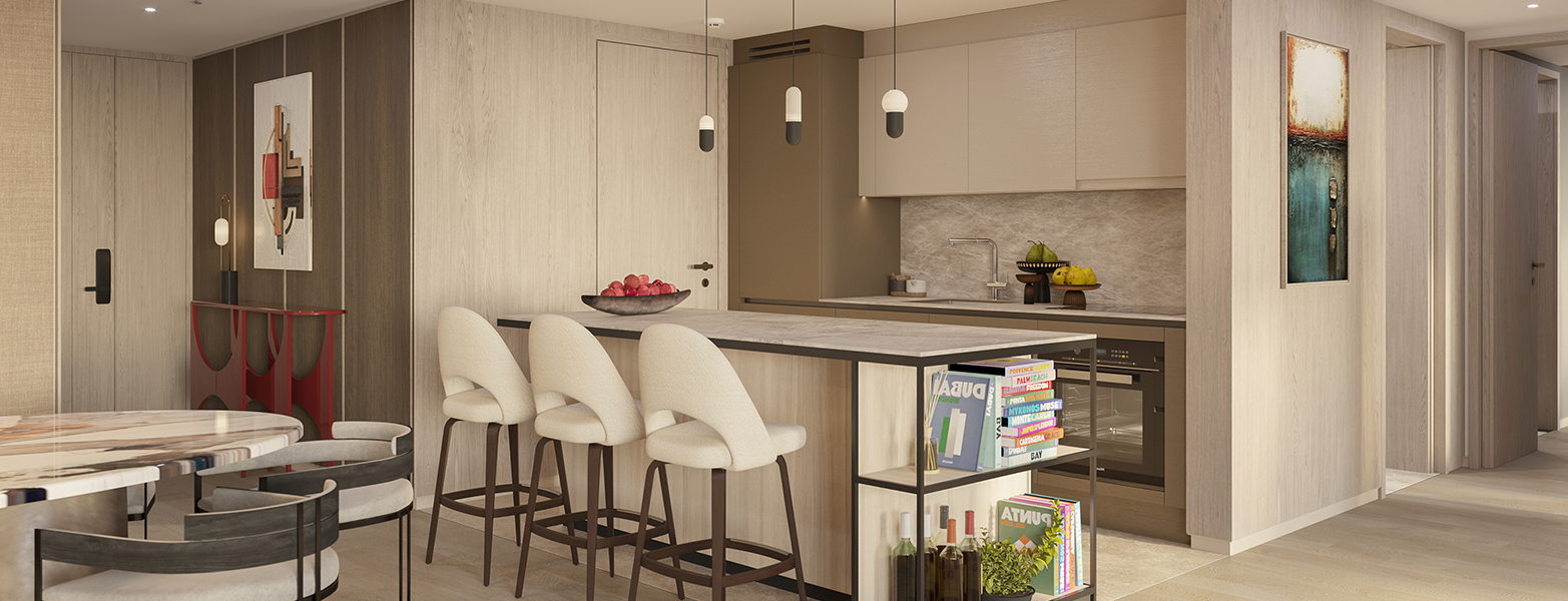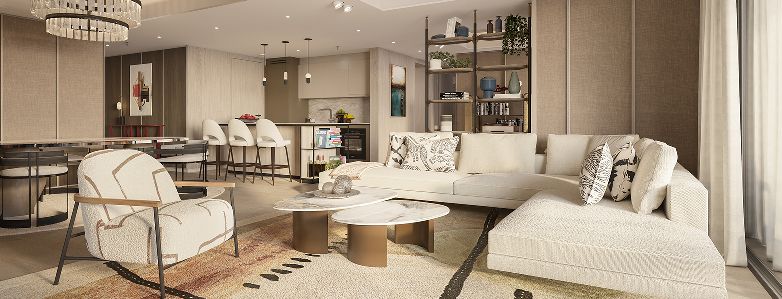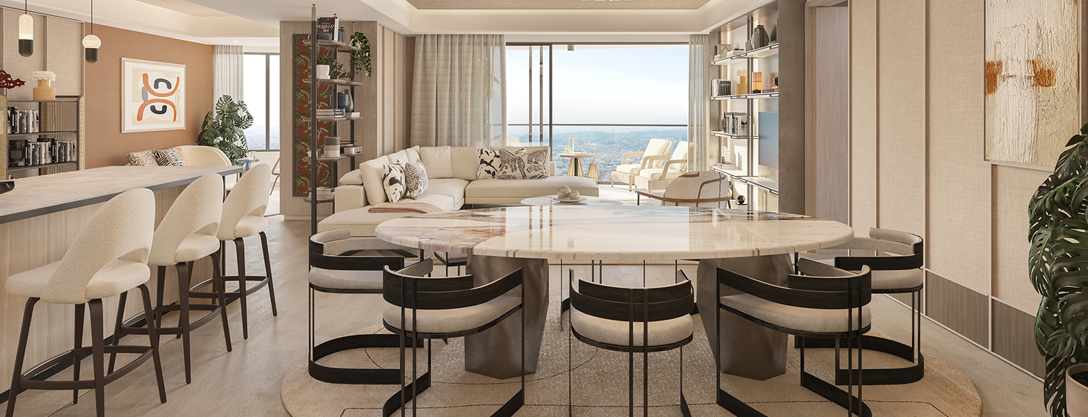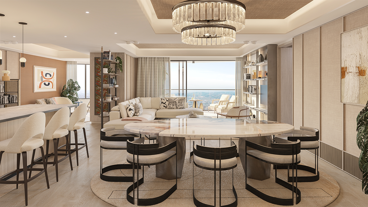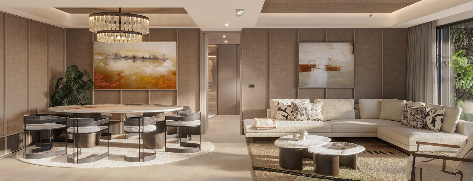 An expansive residence with generous living and dining areas that flow onto a wide loggia. It’s a space designed to welcome both everyday life and memorable occasions.